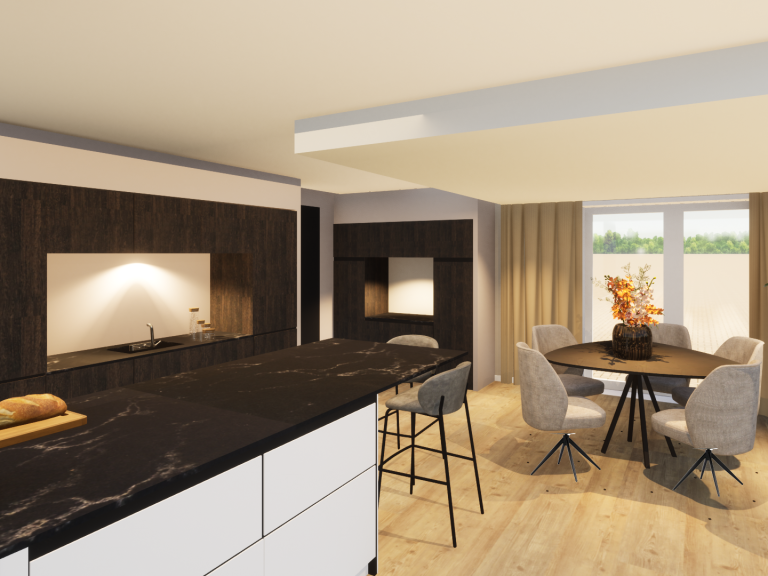 Voor dit project kozen de klanten voor het Compleet Interieur Pakket inclusief 3D-renders. Hierdoor konden zij vooraf al een duidelijk beeld krijgen van hun toekomstige woning en de verschillende keuzes rustig bekijken.
